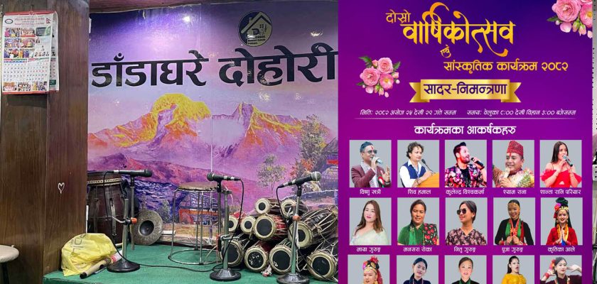 पोखरा । डाँडाघरे दोहोरी साँझले दोस्रो वार्षिकोत्सव मनाउन लागेको छ । साँझले यही असोज २५ गतेदेखि २९ गतेसम्म वार्षिकोत्सव तथा साँस्कृतिक कार्यक्रमको आयोजना गरेको छ ।