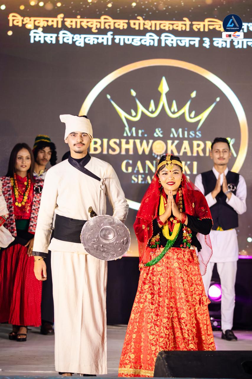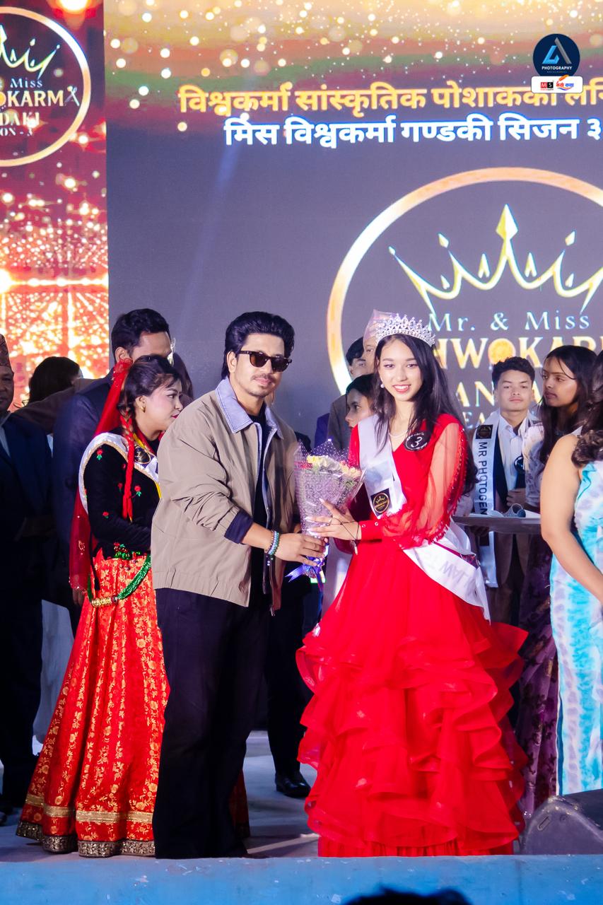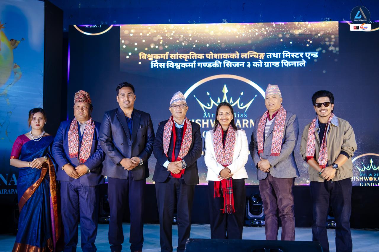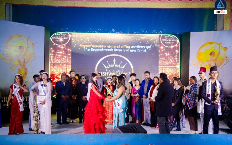 पोखरा — बिश्वकर्मा समुदायको पहिचान, संस्कृति र प्रतिभा उजागर गर्ने उद्देश्यले आयोजना गरिएको ‘मिस्टर एन्ड मिस बिश्वकर्मा गण्डकी सिजन–३’ कार्यक्रम भव्य रूपमा सम्पन्न भएको छ। बी ब्रोज इन्टरटेन्मेन्टको आयोजनामा सम्पन्न उक्त कार्यक्रममा समुदायभित्र रहेका युवायुवतीहरूको आत्मविश्वास, व्यक्तित्व विकास र सामाजिक चेतनालाई केन्द्रमा राखिएको थियो।